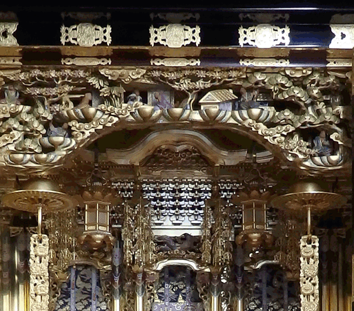 品の良く深い艶の仕上げです特徴 欄間 小狭間 本金粉仕上げ 彩色入り